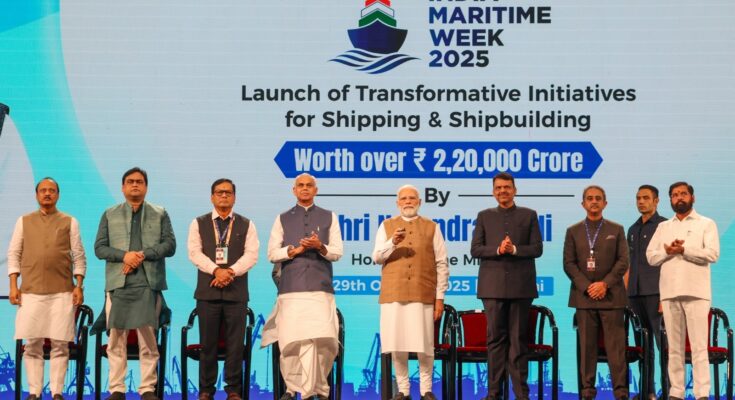 Participating in the Maritime Leaders Conference in Mumbai on 29th of October, as part of India Maritime Week 2025, PM Modi said, “Over the past 11 years, India’s maritime sector has undergone a historic transformation. We are proud that our ports today are emerging among the most efficient in the world. Together, we must move forward toward peace, progress, and prosperity—and build a sustainable future.”