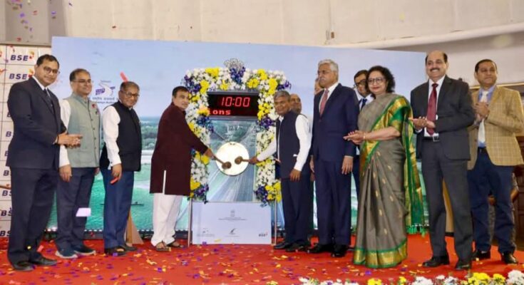 MUMBAI 24 th March 2026 ( TGN ): The maiden public issue of the NHAI-sponsored Raajmarg Infra Investment Trust (RIIT) was ceremonially listed at the Bombay Stock Exchange (BSE) today, in the presence of the Union Minister of Road Transport and Highways, Shri Nitin Gadkari.